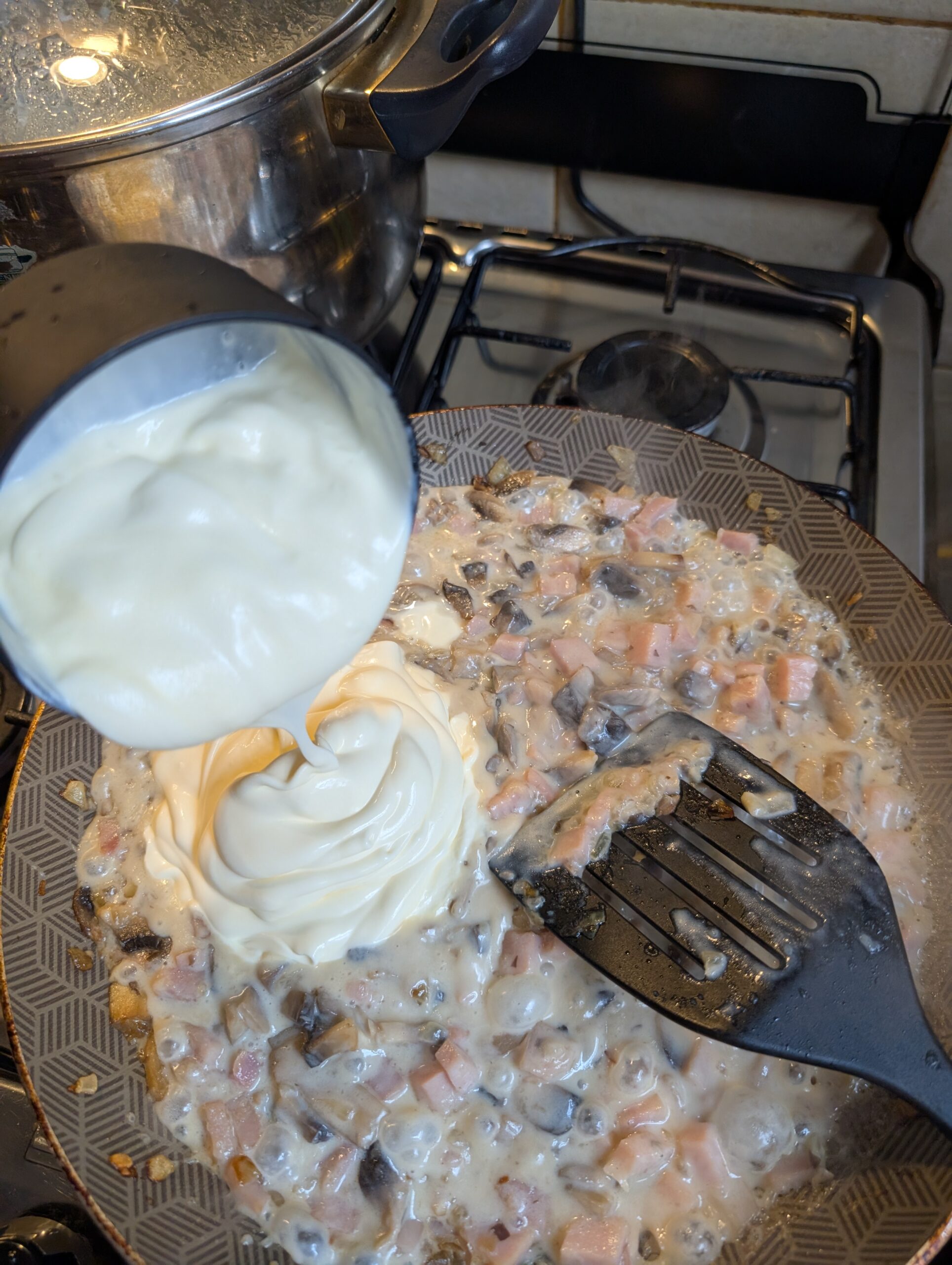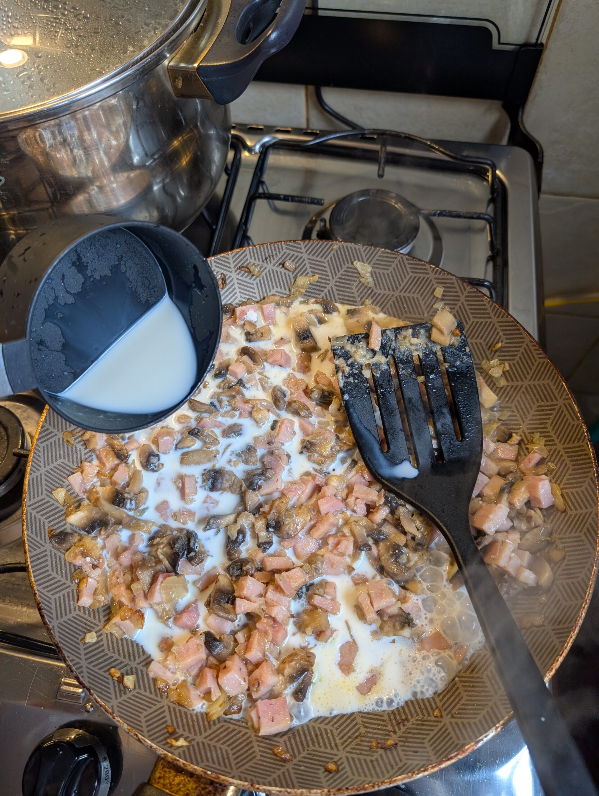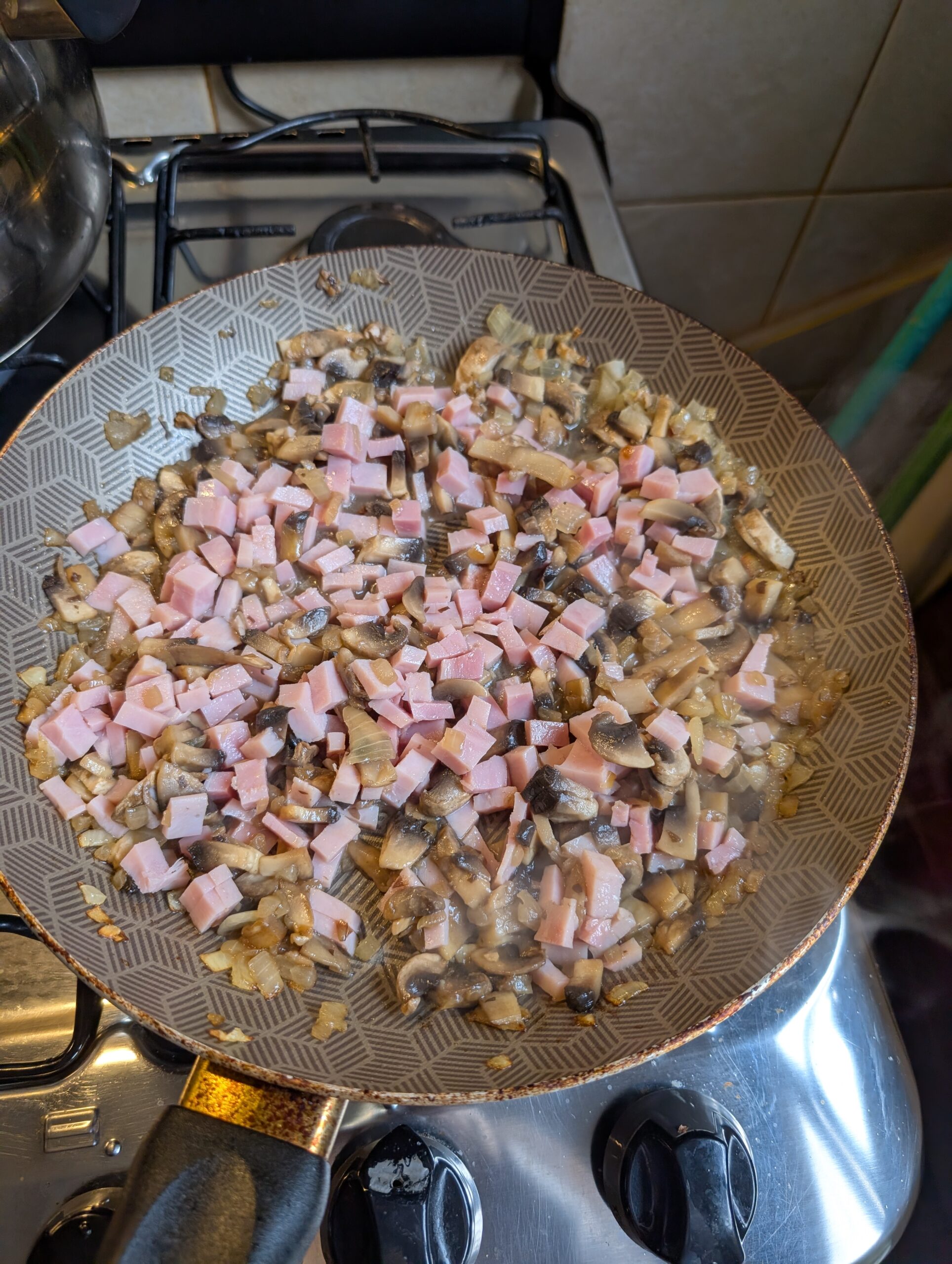 4. Incorporar el jamón y mezclar unos minutos.